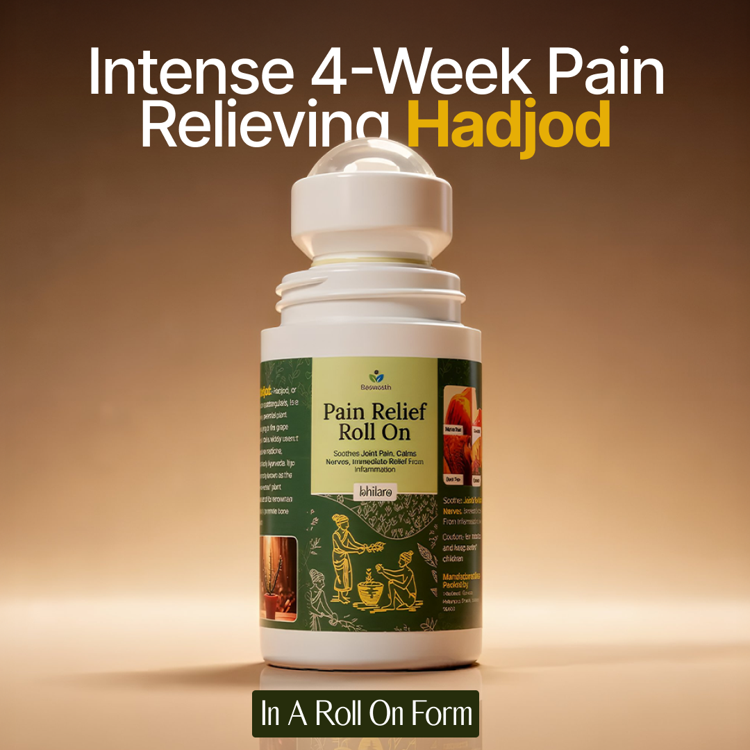 -Experience comforting relief with Beswasth Hadjod Roll-On — a plant-powered blend inspired by traditional Ayurvedic wisdom where Hadjod is known as “haddi jodne wali booti.”