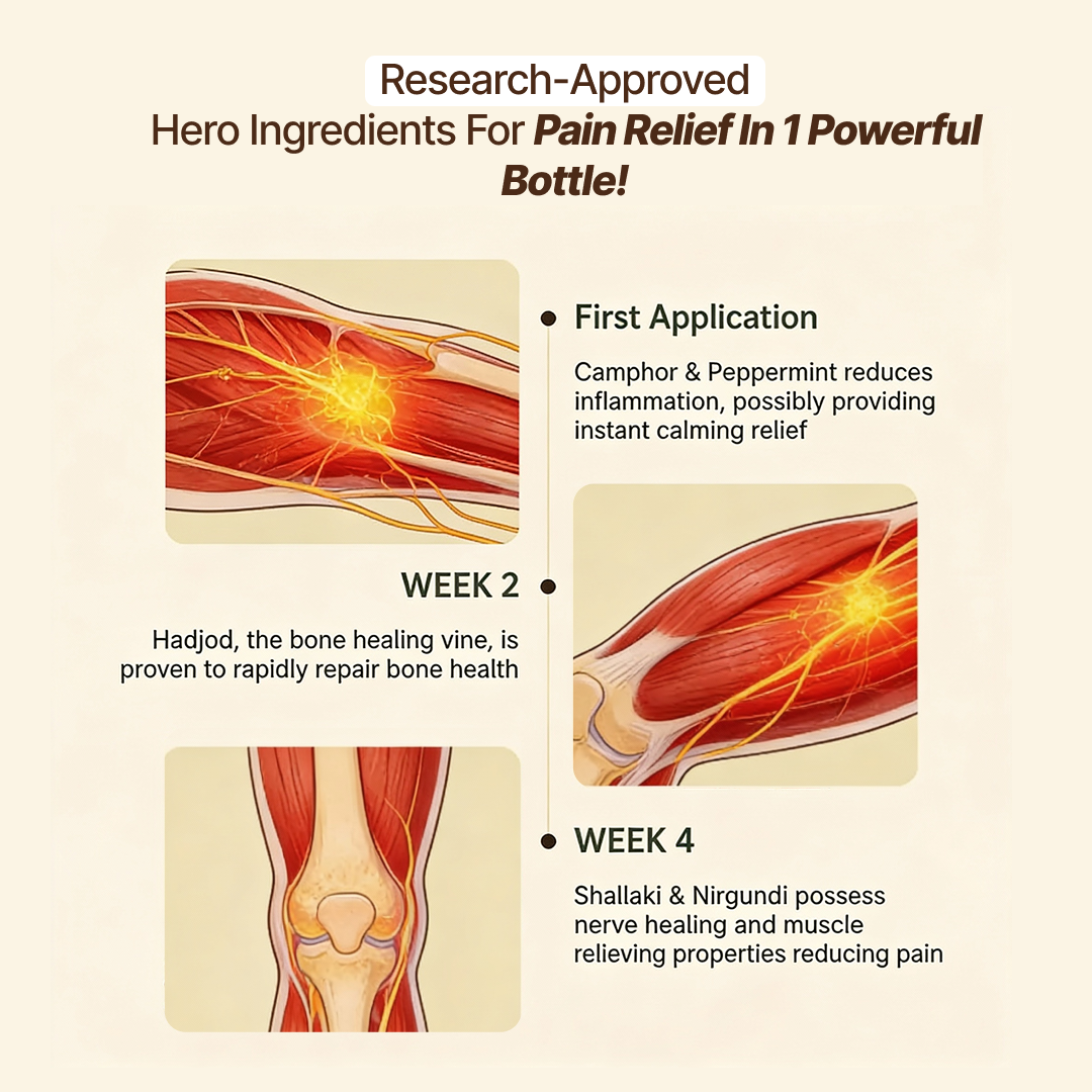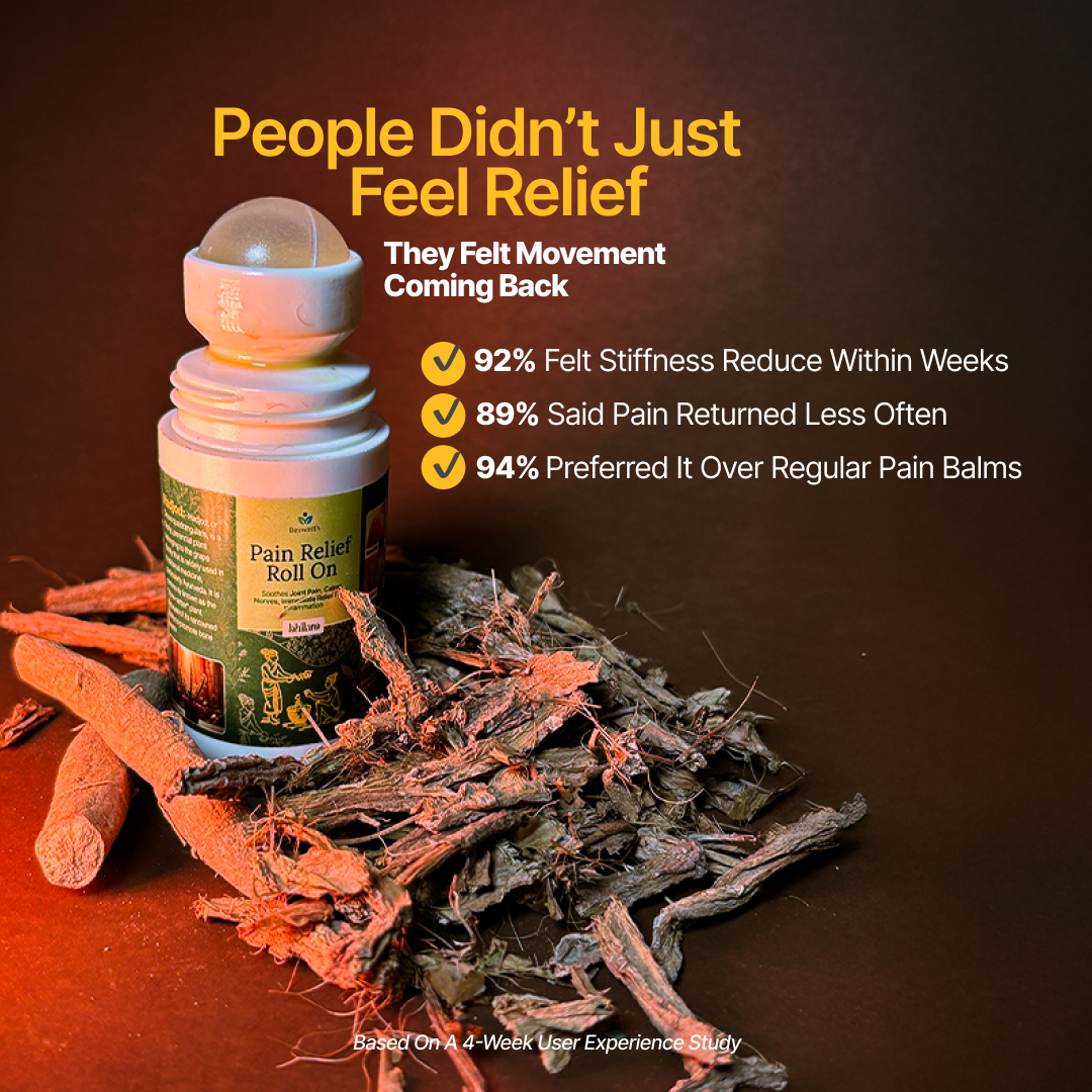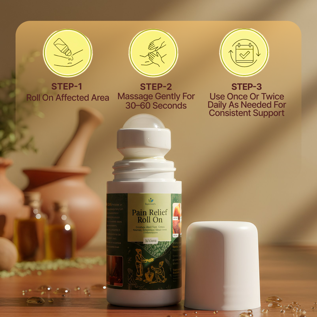 Crafted with Hadjod, Nirgundi, Shallaki, cold-pressed oils, and balancing essential oils, this roll-on is packed with ingredients that calm joint discomfort, relax tired muscles, and support everyday movement — without mess, burning, or overpowering smell.